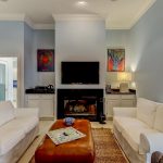 Vaulted living room with built-ins, pre-wired surround sound and cozy fireplace. Iris security system also controls sprinklers and WIFI thermostat.